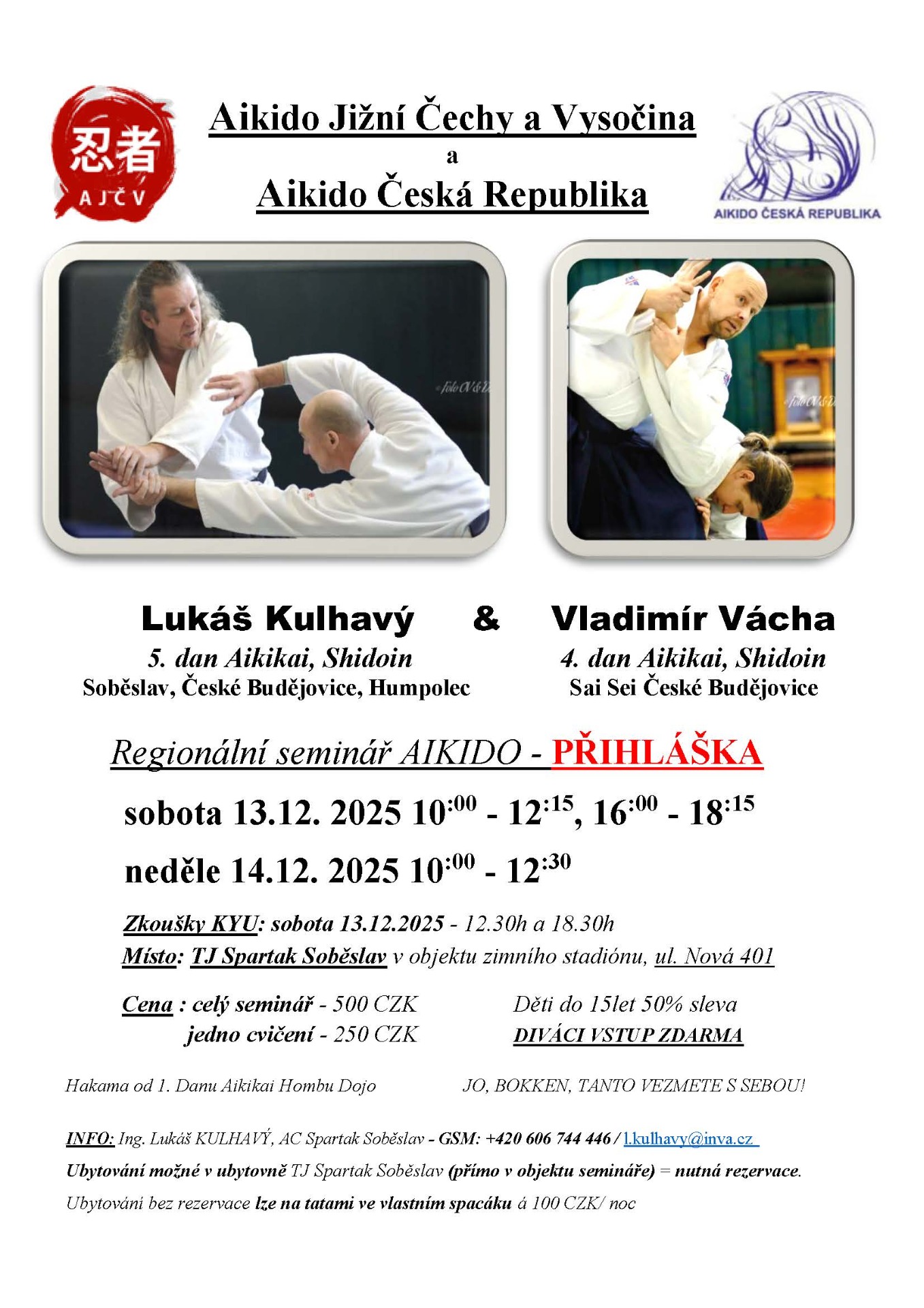 Pod vedením Lukáše Kulhavého 5. Dan Aikikai - Shidoin a Vladimíra Váchy 4. Dan Aikikai - Shidoin